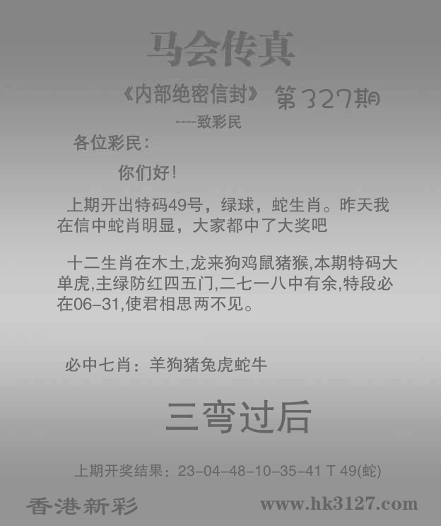 | 327期 | 猴 | 6尾 | 蓝双 | 09-18 | 19猪 |