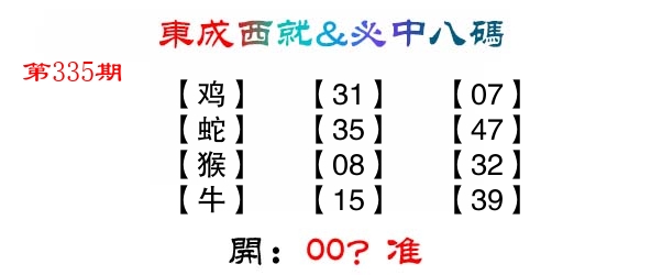 | 331期: ⑧肖 | 羊龙蛇虎马牛猪鸡 | 牛17中 |