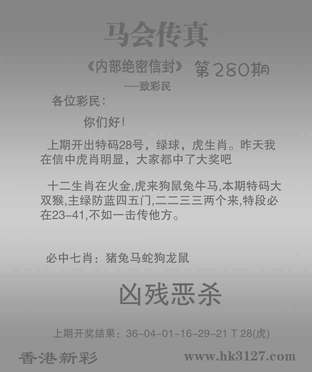 279期: ⑤肖 | 猴兔虎马龙 | 虎28中 |