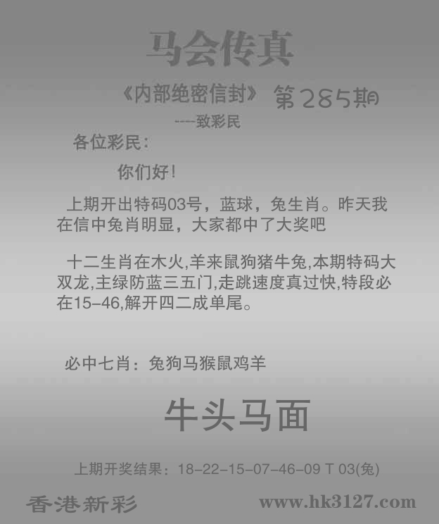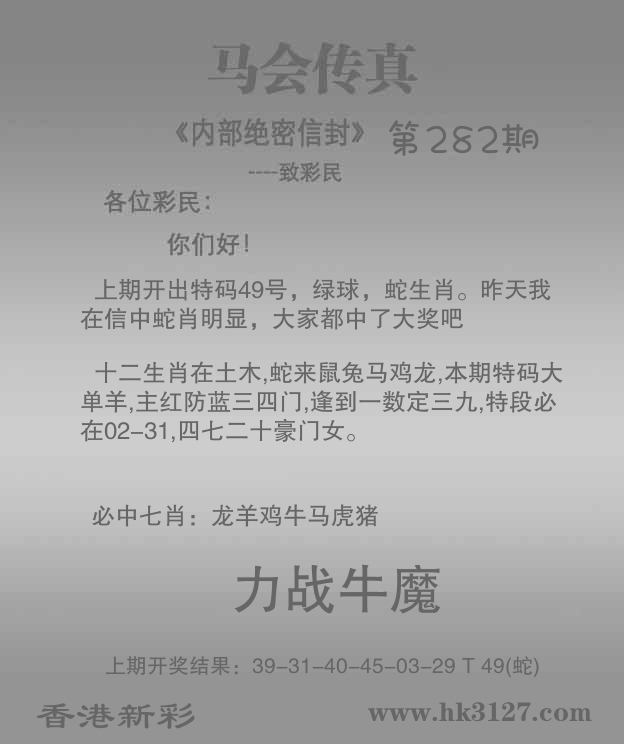 285期: ⑦肖 | 龙猪鼠兔蛇鸡马 | 牛41中 |