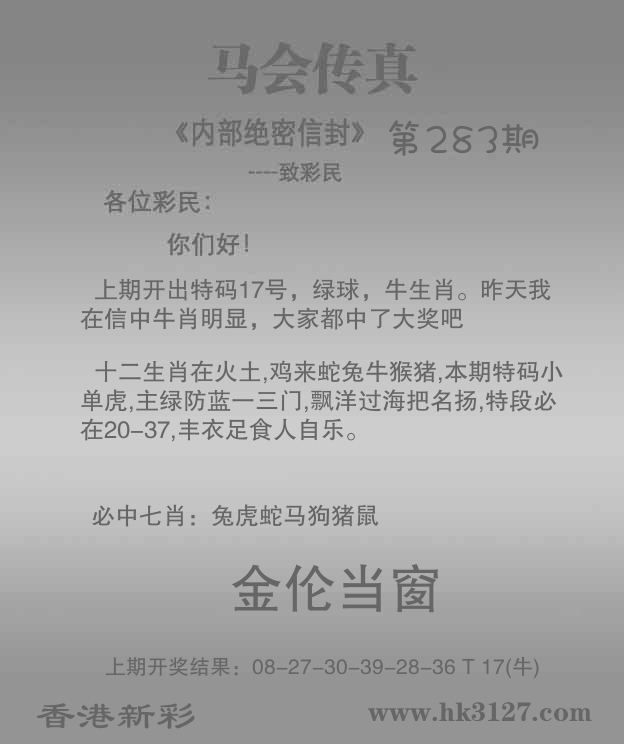 282期: ④肖 | 牛猴鼠虎 | 牛17中 |