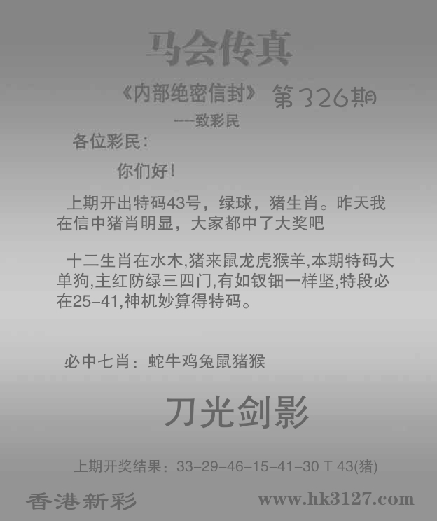 | 326期: ④肖 | 猪马羊兔 | 蛇49中 |