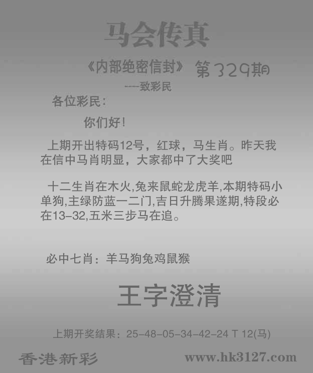 | 329期: ⑤肖 | 鼠鸡虎猴马 | 马24中 |