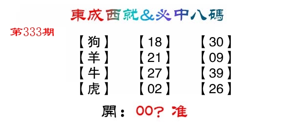 | 333期: ⑦肖 | 羊鼠狗虎鸡猪牛 | ????中 |